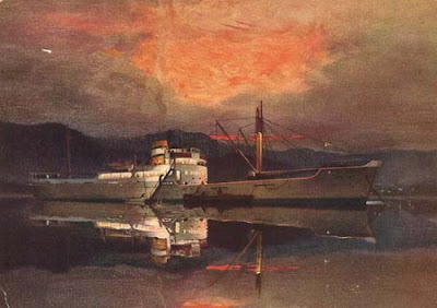 Fotografias da colecção LMC: postal do navio segundo pintura de Gordon Ellis, e imagem feita no Funchal pelos antigos fotógrafos Perestrellos - 12 Fevereiro 2007