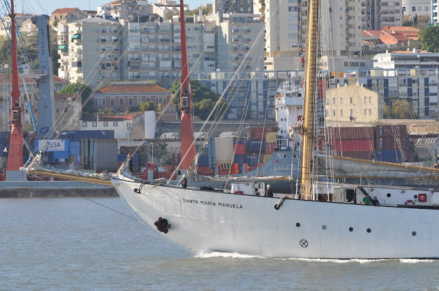 Mais uma tarde a fotografar a navegação a partir das águas do Tejo, a tarde de 7 de Novembro de 2017: o navio-escola SAGRES navegou pelo canal de Cabo Ruivo para atracar à respectiva ponte-cais, e para lhe dar lugar de atracação, o SANTA MARIA MANUELA faz a rota inversa e foi atracar ao Alfeite por umas horas.