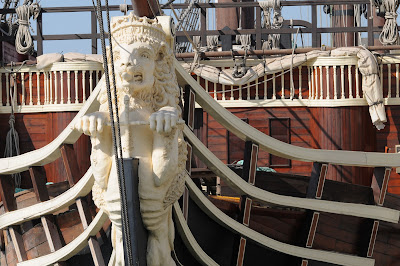 O casco não apresenta quaisquer curvaturas dando o efeito estranho de modernidade naval... Enfim uma réplica do famoso navio de 1769 numa versão para turístas...