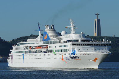 Ibero Cruises GRAND VOYAGER is now calling in Lisbon on saturdays on her regular cruises from Lisbon (Saturdays) and Vigo (Sundays) and is seen here arriving inthe river Tagus, very early in the morning on 25 June 2011...