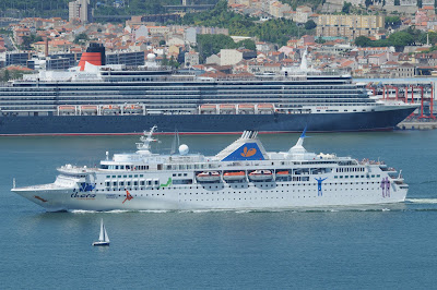 O navio de cruzeiros de bandeira portuguesa (registo da Madeira) GRAND VOYAGER tem vindo a fazer escalas regulares em Lisboa no decurso de uma série de cruzeiros de 7 dias que tanto se podem iniciar entre nós ao Sábado como a partir de Vigo aos Domingos.