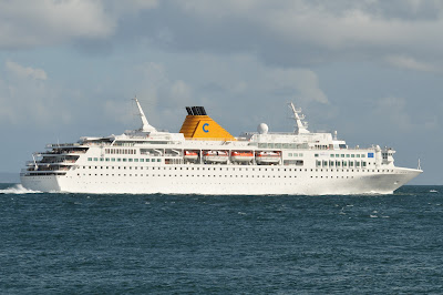 Cruise ship COSTA VOYAGER departing from the river Tagus on her way out of Lisbon on 19 May 2012.