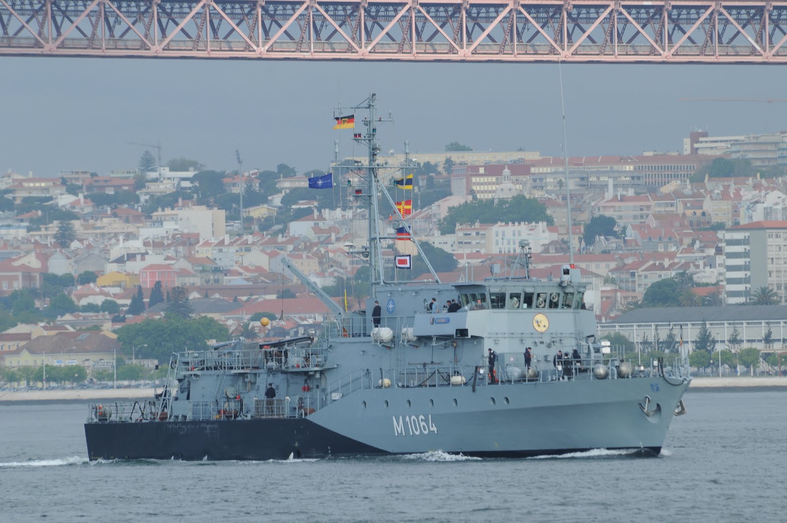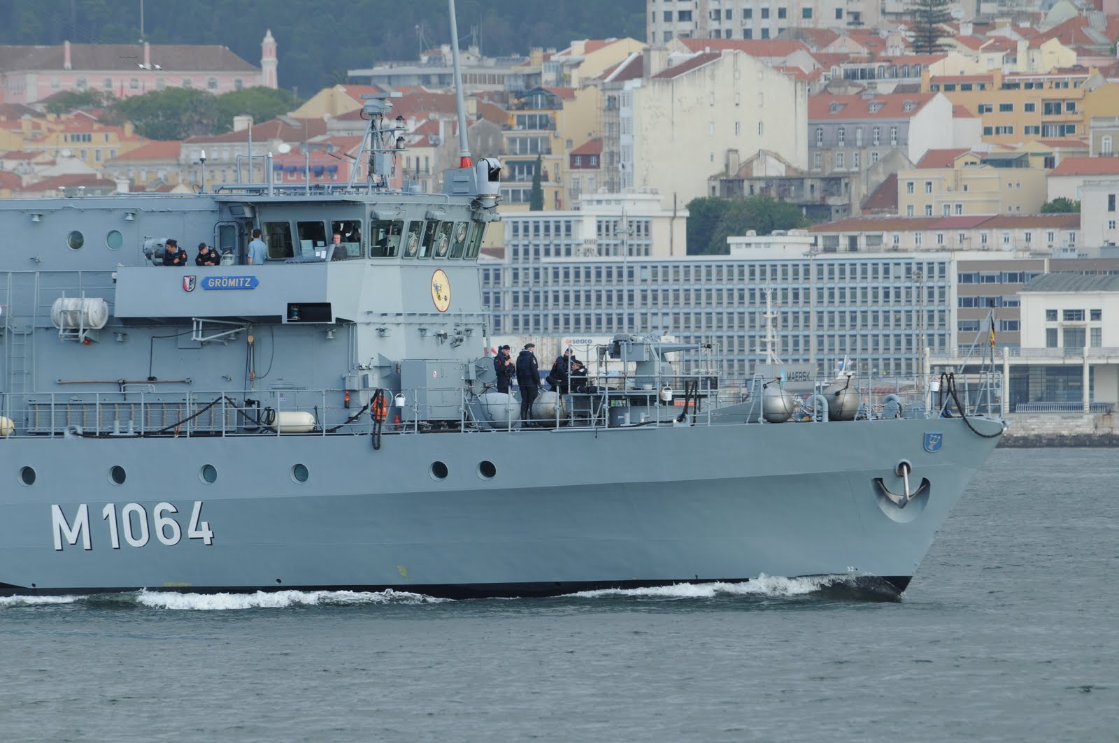 O navio de guerra alemão FGS GROEMITZ entrando o Tejo dia 7 de Maio de 2010 de manhã, integrado numa força naval da NATO composta por quatro unidades. Os navios estão atracados em Santa Apolónia até dia 10.