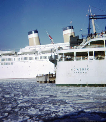 Bill Miller writes / I took this photo of the Caribbean-bound Independence on a bitterly cold February afternoon in 1967. She was departing from Pier 84 at West 44th Street in Manhattan. I was using a $10 plastic box camera at that time.