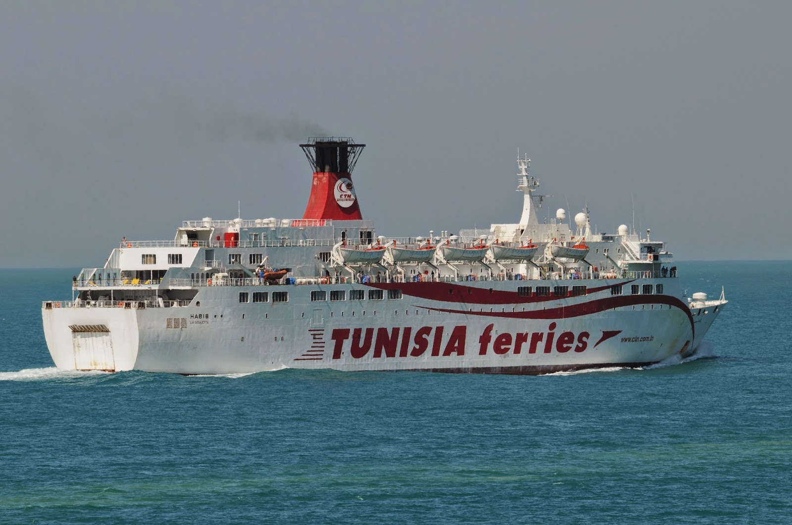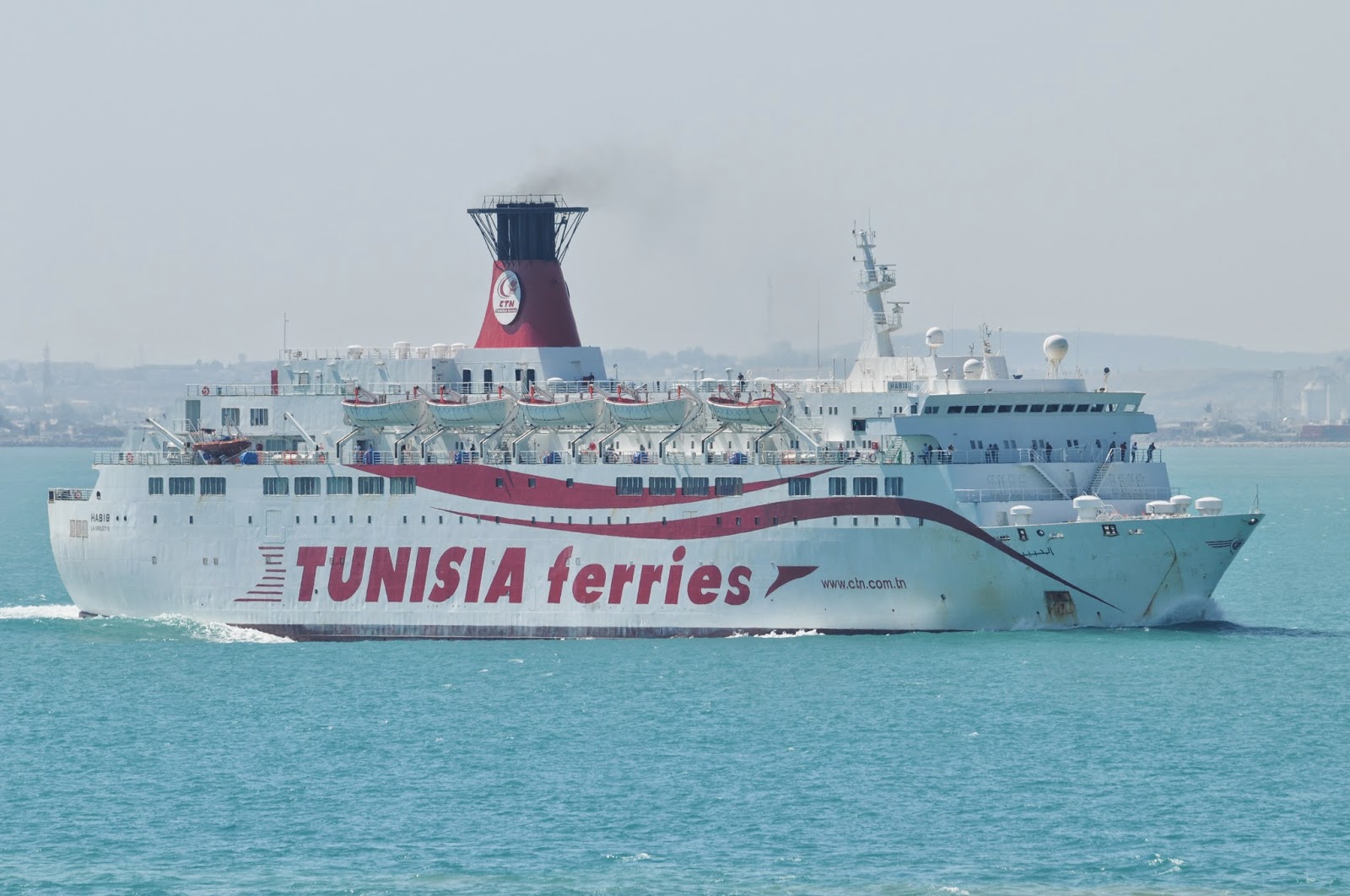 A very interesting passenger RoRo ferry, the Tunisian HABIB photographed underway off the port of La Goullete, Tunis, on 17 September 2010.