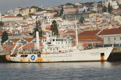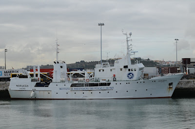 Perguntou há dias o nosso Amigo Cap Créus onde andava o navio de investigação das pescas NORUEGA. Pois em sua honra aqui ficam estas imagens tiradas na manhã de 27-04-2009, com o NORUEGA a entrar a doca de Alcântara vindo do Olho de Boi onde esteve atracado durante o fim de semana. Aparentemente o NORUEGA está bem e recomenda-se...