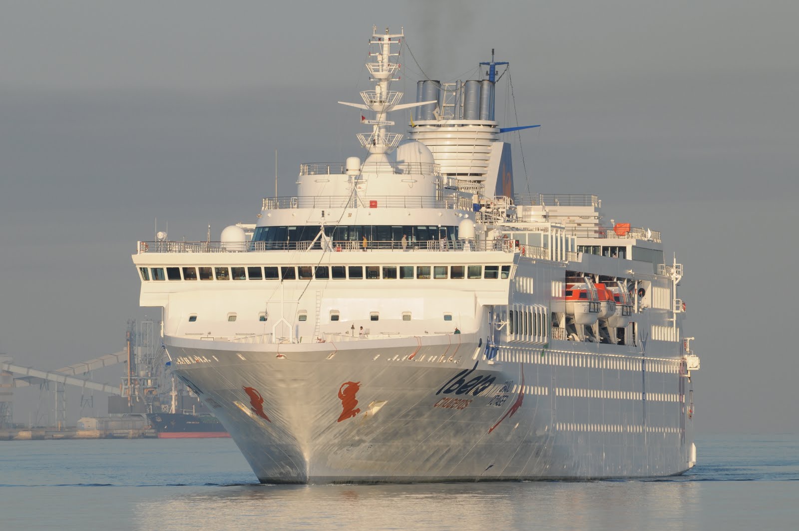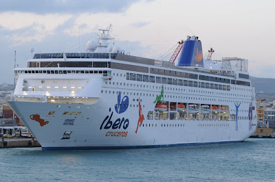 Built in Sweden as CELEBRATION for Carnival Cruise lines of Miami and transferred to the Portuguese flag (Madeira register) this year when she was transferred to the Spanish Ibero Cruceros company.