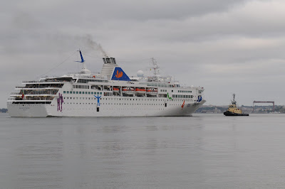 Ibero Cruises GRAND VOYAGER is now calling in Lisbon on saturdays on her regular cruises from Lisbon (Saturdays) and Vigo (Sundays) and is seen here arriving inthe river Tagus, very early in the morning on 25 June 2011...