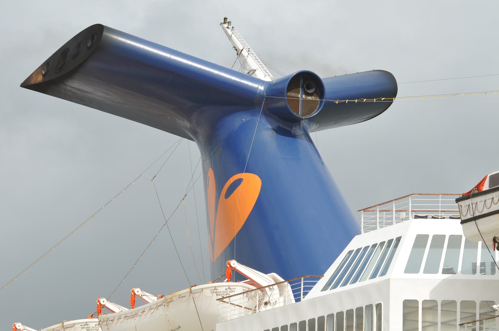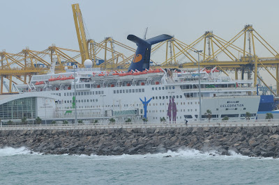 GRAND CELEBRATION, one of 10 cruise ships & ferries at Barcelona on 9 October. A busy port despite the grey cloudy weather and the stormy seas awaiting us all...