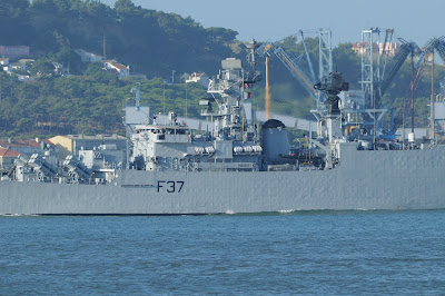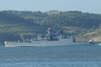 Imagens de pormenor da Fragata da União Indiana F37 INS BEAS entrando no Tejo na manhã de 8 de Julho de 2009. Mais imagens e alguma informação sobre os navios da classe a que a BEAS pertence aqui. Curiosamente notam-se alguns elementos de arquitectura naval semelhantes aos navios da antiga classe LEANDER, da Royal Navy.