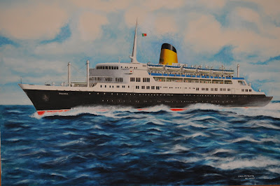 Portuguese passenger liner FUNCHAL painted by the Portuguese marine painter José Manuel Mota Pimenta and included in the exhibition commemorative of FUNCHAL 50 years of service under the original name. Exhibition promoted by CEN - Madeira Ship Club inaugurated on 28 November at the Funchal City Hall with doors open until 9 December 2011.