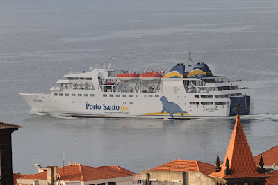 The Portuguese cruise ferry LOBO MARINHO leaving Funchal on her usual 08 AM departure for Porto Santo Island.
