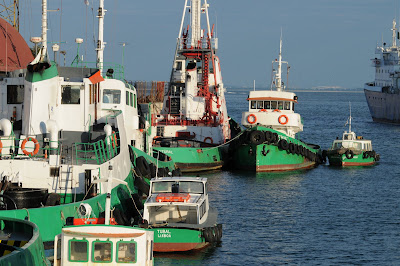Rebocadores e embarcações auxiliares portuárias fotografados na Rocha do Conde de Óbidos, junto à entrada da Doca de Alcântara, na arde de 7 de Novembro de 2013...