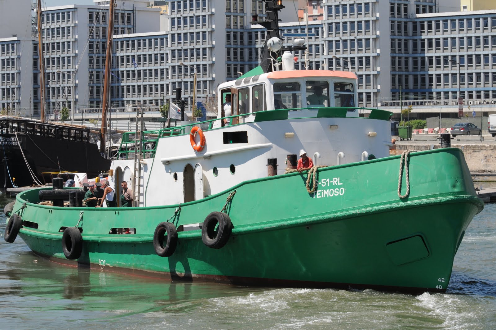 Portuguese coastal tug GUARDIÃO leaving Lisbon early in the morning on 29 May 2010