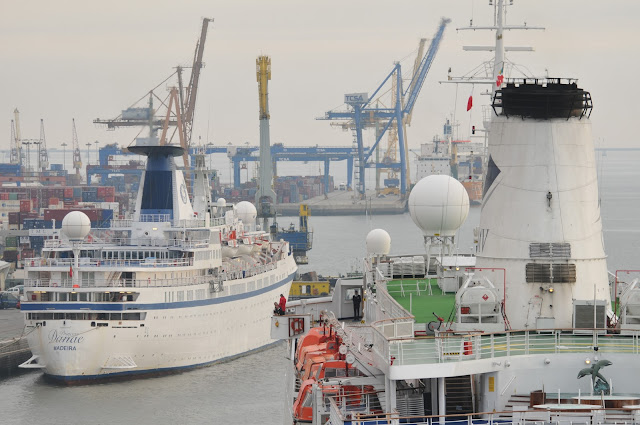 QUEEN ELIZABETH and OCEANA, both Carnival UK branded in Cunard and P&O colours and registered in Bermuda to honnour Lady Hamilton, and MARCO POLO, the former ALEXANDR PUSHKIN of Soviet fame were the ships calling on the final gathering of pax ships in the river Tagus this year. Two other beauties were also in port, the FUNCHAL and the PRINCESS DANAE, both undergoing refits...