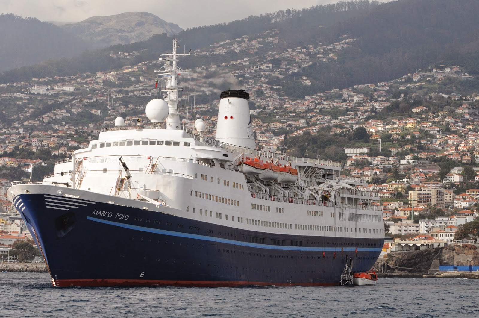 Cruise ship MARCO POLO the former ALEXANDR PUSHKIN of 1965 and one of the few remaining survivors of the once vast Soviet passenger ship fleet. Photographs by Luis Miguel Correia taken in Madeira Island (Funchal) on 31 December 2014.