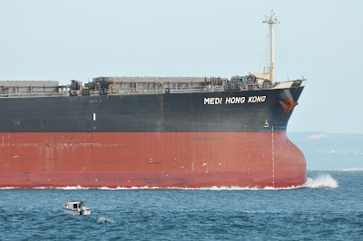 Graneleiro italiano MEDI HONG KONG a sair de Lisboa na tarde de 24 de Abril de 2012 depois de ter desatracado do terminal cerealífero da Trafaria.