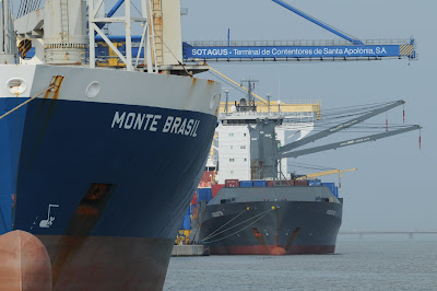 O porta-contentores MONTE BRASIL foi construído em Hamburgo para a Transinsular e faz a carreira das Ilhas há 20 anos, desde 1994. No ano seguinte juntou-se-lhe o gémeo MONTE DA GUIA, substituindo-se então os navios LUSO e INSULANO (II). Este ano sofreu uma grande reparação de reclassificação (a quarta), em Viana do Castelo, com substituição de aço e um investimento para que continue a ligar o Continente às Ilhas por mais alguns anos... Fotografia de Luís Miguel Correia tirada em Santa Apolónia a 12 de Setembro de 2014.