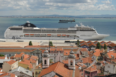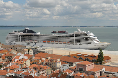 Cruise ship MSC POESIA photographed yesterday evening (Friday 13 April) alongside the Santa Apolonia Cruise Terminal in Lisbon. What better than this beautiful sight full of poesia?