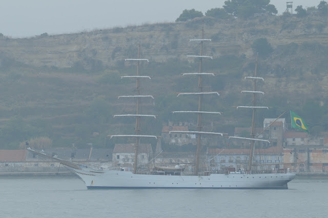 Navio-escola CISNE BRANCO, da Marinha de Guerra do Brasil, fundeada no Tejo após entrar em Lisboa na manhã de 11 de Setembro para mais uma visita.