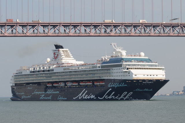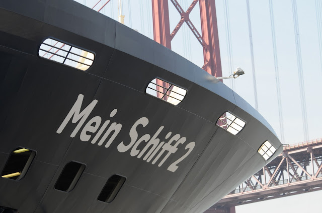 Turku, 19 NOV 2018: O novo navio de cruzeiros MEIN SCHIFF 2, que tem estado a ser construído na Finlândia por encomenda da empresa alemã TUI Cruises, deixou hoje o cais de aprestamento no estaleiro Meyer Turku, fazendo-se ao mar pela primeira vez. Este navio de passageiros é a segunda unidade da segunda série de novas construções saídas dos estaleiros Meyer Turku para a TUI, sendo idêntico ao MEIN SCHIFF 1, que entrou ao serviço este ano e visitou o Tejo pela primeira vez a 4 de Setembro, depois de ter sido entregue ao armador a 25-04 e baptizado em Hamburgo a 11 de Maio.