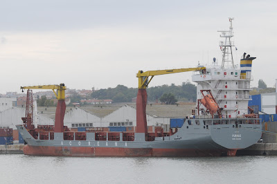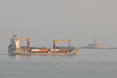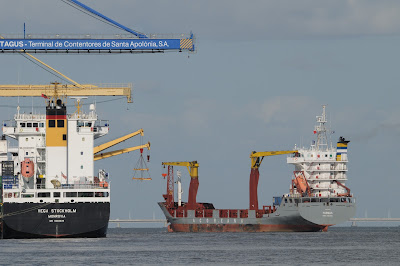 No mesmo dia conseguir fotografar um navio português a chegar a Lisboa (PONTA SÃO LOURENÇO, ver texto anterior) e outro a largar é obra e muita sorte, nos dias que se vão vivendo em Portugal, com uma crise que está a levar a nova redução da Marinha Mercante, com a diminuição da navegação regular para as Ilhas e uma ainda menor participação nos serviços para o estrangeiro.
