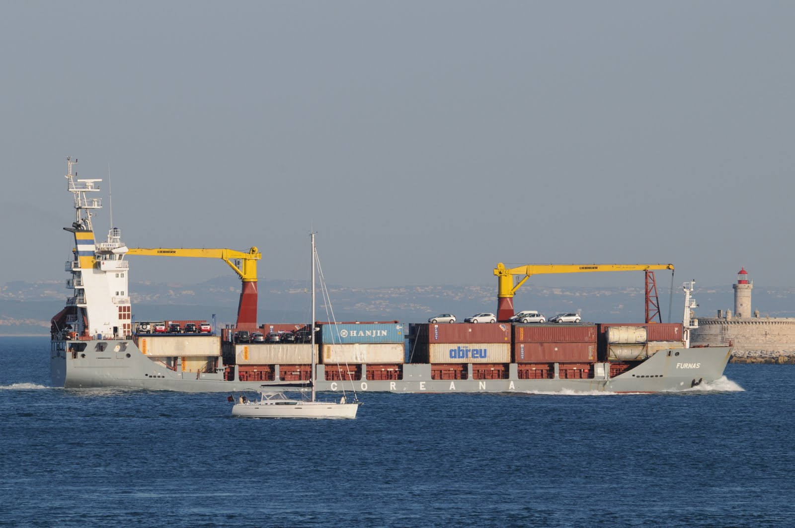 Porta-contentores português FURNAS fotografado na tarde de 7 de Março de 2017 ao entrar em Lisbon vindo dos Açores em mais uma viagem ao serviço da companhia armadora Mutualista Açoreana, emresa que dentro de três anos, em 2020, vai comemorar 100 anos de actividade.