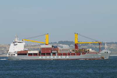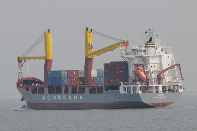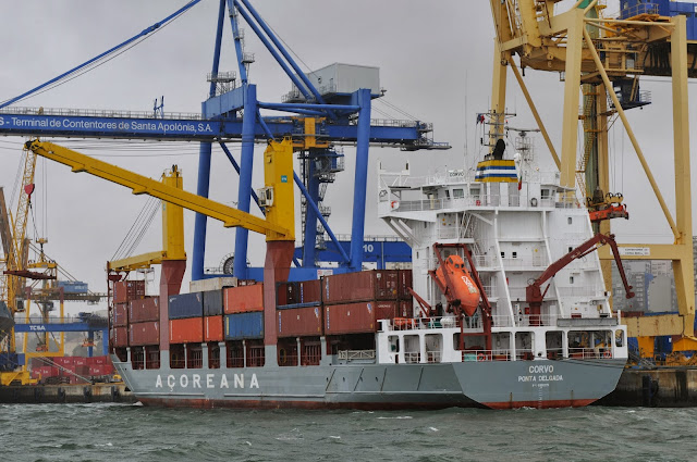 E já agora, uma amostra do porta-contentores ILHA DE S. MIGUEL, ex-ANJA, da CTM, a largar de Lisboa para as Ilhas no início dos anos 1980. Em 1986 passou a ser o AÇOR da Mutualista Açoreana. A história pormenorizada deste navio está publicada e ilustrada no meu livro n.m. CORVO de 2007. Ver aqui...