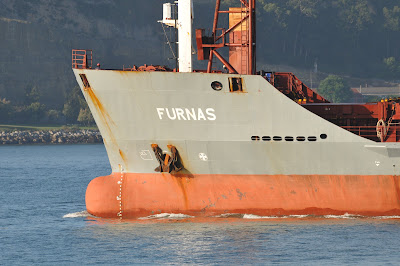 Navio porta-contentores FURNAS da companhia Mutualista Açoreana largando do Tejo na tarde de 3 de Junho de 2011 em mais uma das suas viagens regulares entre o Continente e os Açores, um serviço assegurado pela Mutualista desde 1920.