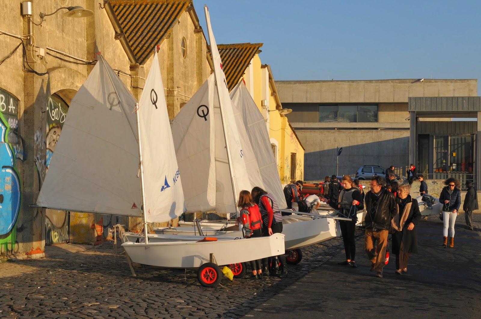 Dá gosto passar pelo antigo Cais da Ribeira Nova aos fins de semana de tarde e apreciar junto às instalações do Náutico Clube BOA ESPERANÇA as crianças de volta das sua embarcações de vela. É assim que se ganha o gosto pela água, pelos barcos, pelos desportos náuticos e se forma a compreensão para os assuntos do mar, isto é, é assim que nasce a tão necessária cultura marítima, tão deficitária neste Portugal de marinheiros. Fotografia de L. M. Correia registada a 10 de Janeiro de 2014.