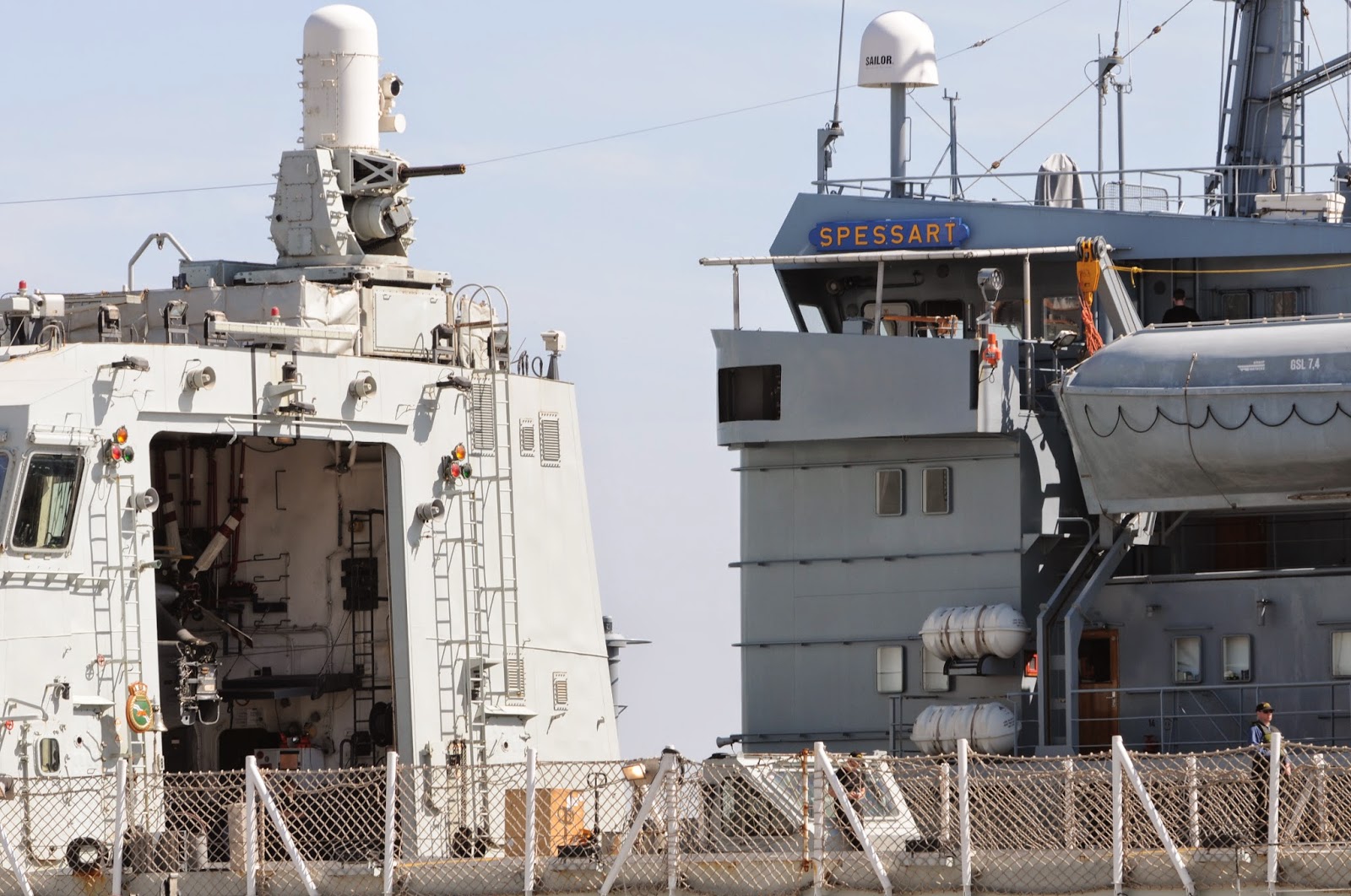 Yesterday I had a photographic look at the three ships berthed at Rocha do Conde de Óbidos, the very elegant Italian Frigate ALISEO, the Canadian Frigate FREDERICTON and the German auxiliary ship SPESSART...