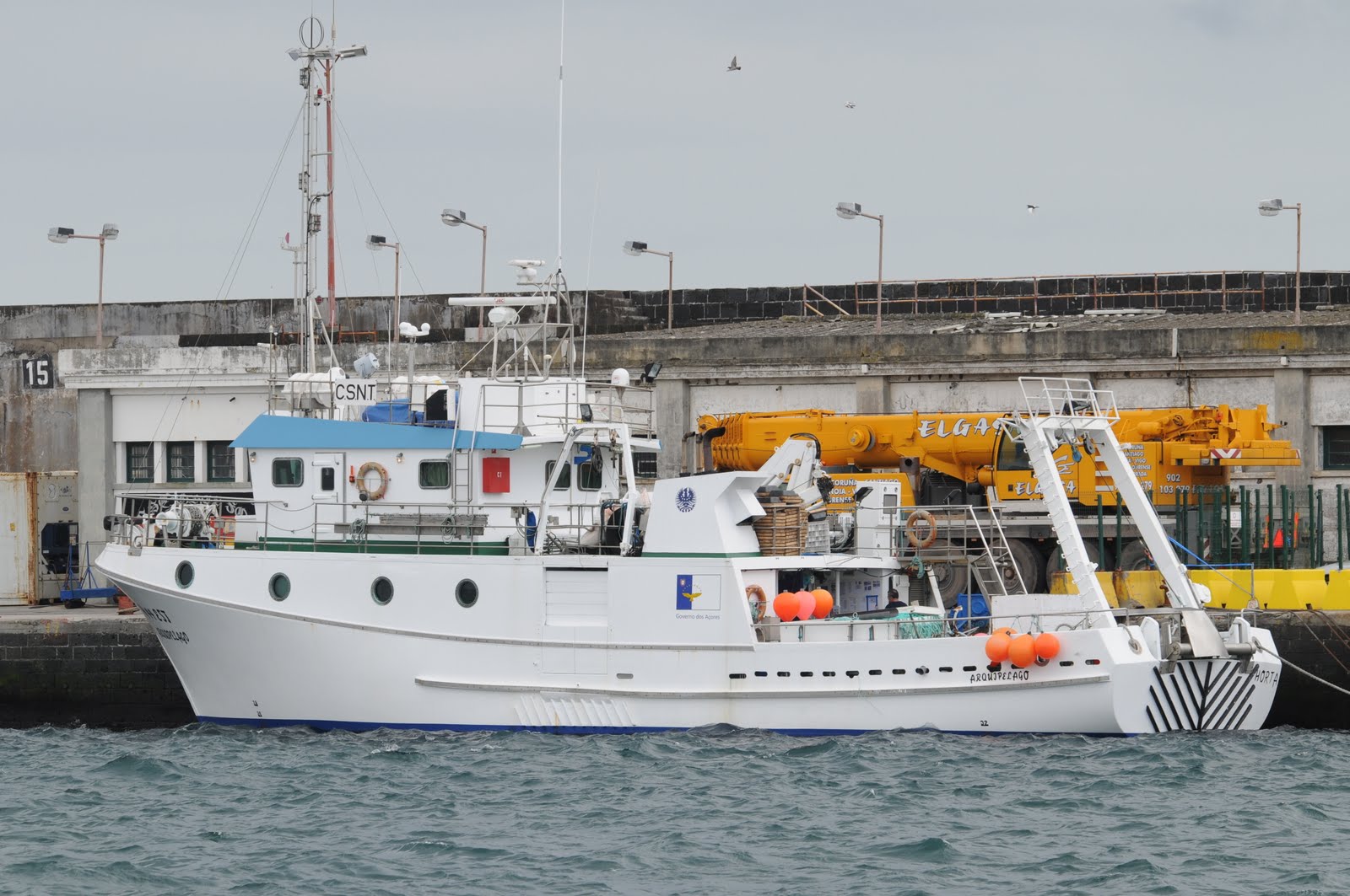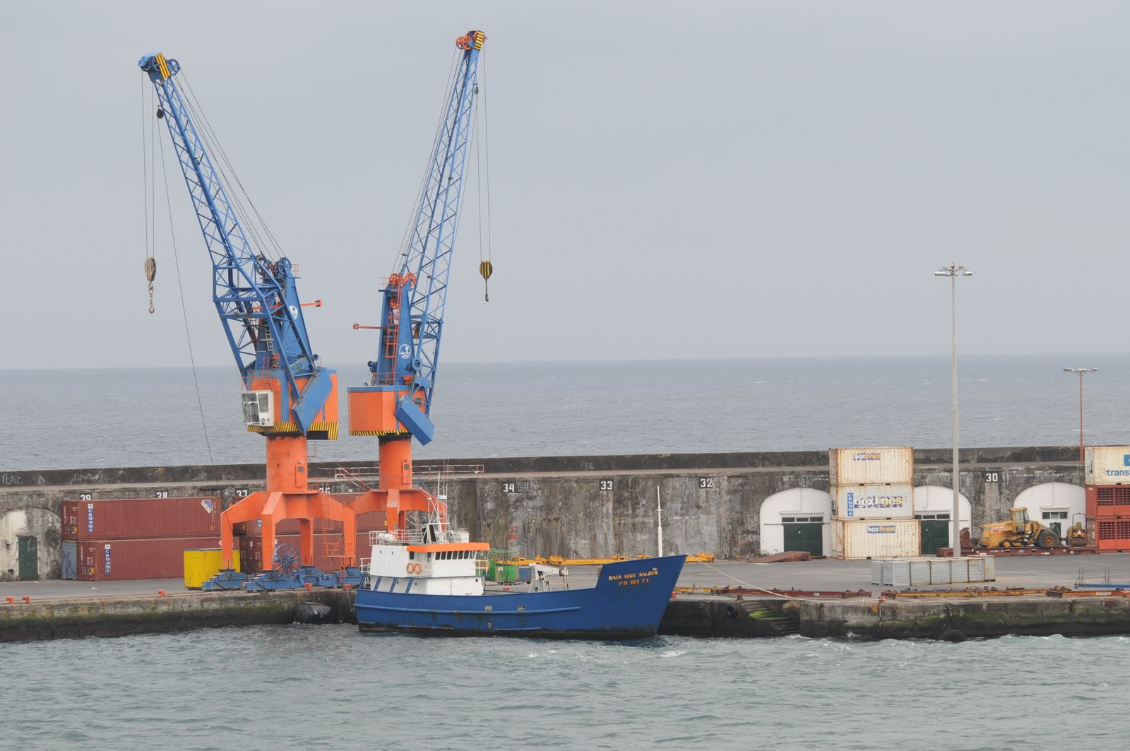 Como moldura, duas gruas e o molhe de Ponta Delgada no passado dia 14 de Maio de 2011.