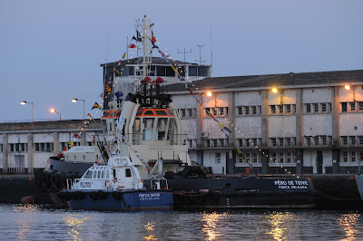 Porto de Ponta Delgada, São Miguel, com a lancha de pilotos PORTAS DO MAR e o rebocador PÊRO DE TEIVE atracados. Fotografia de Julho de 2008.
