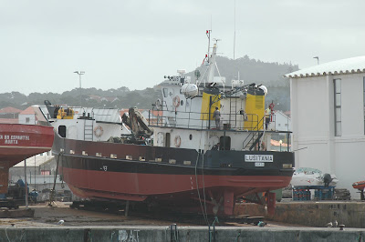 Cargueiro LUSITANIA varado no estaleiro da Madalena do Pico a 26 de Setembro de 2006 com as suas bonitas chaminés amarelas a recordar os navios da velha Insulana.