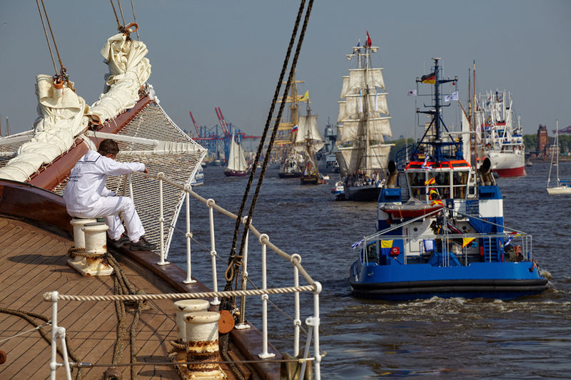 Ships in Lisbon on 19 April 2014: FUNCHAL turning to go alongside at the Rocha passenger ship terminal at the end of her Easter cruise, the NATO frigates THOR HEYERDAHL (Norwegian Navy) and MAGDBURG (German Navy), the sail cruise ships WINDSURF and SEA CLOUD, the ferry EXPRESS SANTORINI and the Portuscale Cruises passenger ships LISBOA and PORTO.
