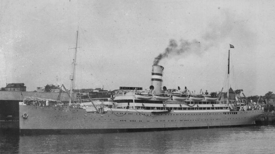 A very interesting view of Lisbon on 4 July 1952 with four passenger liners of Companhia Colonial de Navegação in port: PÁTRIA, VERA CRUZ and MOUZINHO and inside the dock, the beautiful SERPA PINTO ex EBRO of Royal Mail Line.
