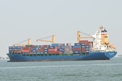 The container ship SFL EUROPA photographed in Lisbon on 14 May 2012. She is seen at anchor at Mar da Palha.