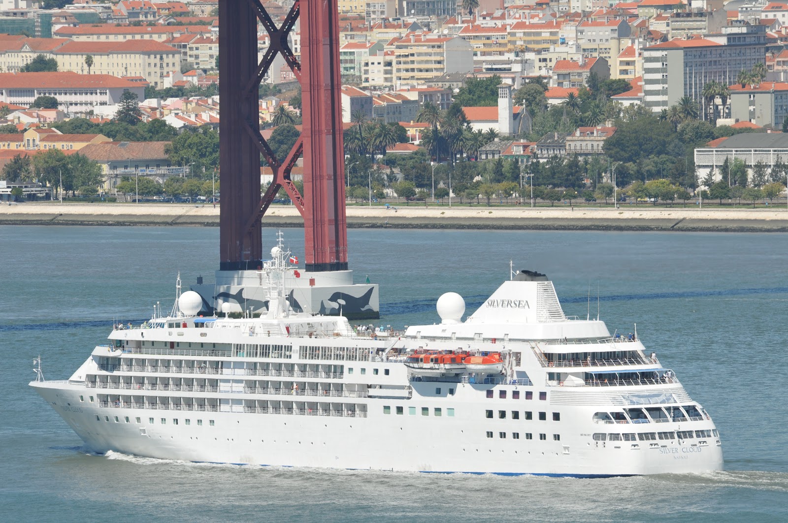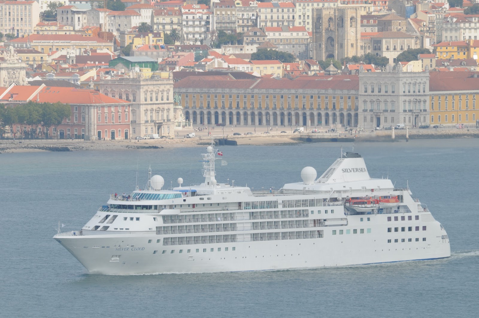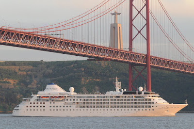 The cruise ship SILVER WIND leaving Lisbon early in the morning of 7 July after an overnight (actually two-night) call.