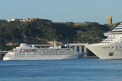 Following a significant improvement in off-season cruise ship calls in Lisbon this January and February, the 2010 season started yesterday, 10 March, with the arrival of SILVER WIND for an overnight call. She docked at the Rocha terminal and departs today at 6 PM for Portimão and the Med. Photograph taken on 10 March 2010.