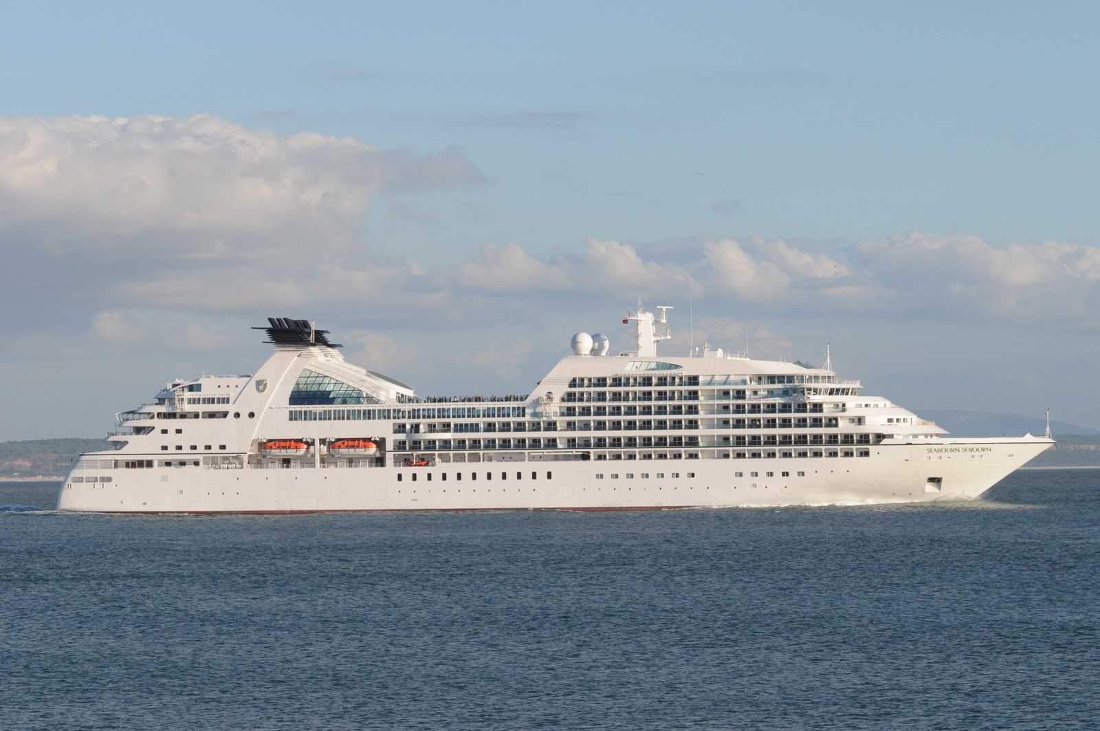 SEABOURN SOJOURN, the company's newest and largest ship photographed on 11 October off the Portuguese West coast, after her inaugural visit to Lisbon.