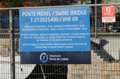 O nosso Mundo está cada vez mais carregado de regras e convenções, e a actividade portuária não é excepção à regra. Um pouco por todo o lado os portos vão sendo alindados com sinais, dísticos, câmaras e outros instrumentos muito úteis e esbeltos. Aqui ficam alguns patentes na zona da estação marítima da Rocha, em Lisboa...