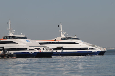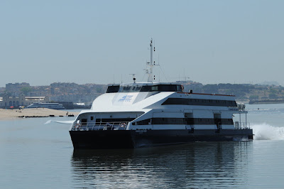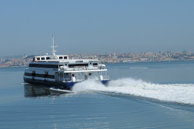 Olhando a margem, destacam-se dois testemunhos do estilo "pato bravo" que marcou as últimas décadas e esteticamente poderiam ser enquadrados num movimento de arquitectura rasca... Estetas da mesma escola terão pintado os navios de passageiros da CP - tão elegantes nas cores originais - com os cascos azuis e as riscas oblíquas brancas, num ensaio totalmente desrespeitador das linhas arquitectónicas clássicas do ALENTEJO e dos seus cinco irmãos. As chaminés verdes da Soflusa também não melhoraram nada, mas mesmo assim, modernizados com roupagem duvidosa,estes naviozinhos deixaram saudades quando foram retirados do serviço em 2004, substituídos pelos catamarãs de Singapura, mais rápidos e muito caros...