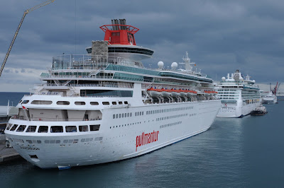 Two generations of Royal Caribbean cruise ships alongside Barcelona on 30 March 2009: the SOVEREIGN ex-SOVEREIGN of the SEAS and the more modern BRILLIANCE of the SEAS.