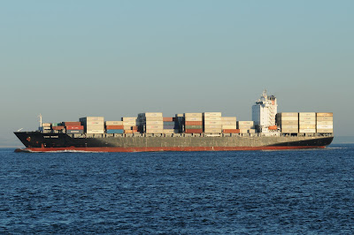 The German-owned, Chinese-built container ship CSAV RAHUE arriving in Lisbon on 11 June 2009.