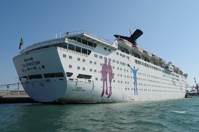 The Portuguese flag Madeira registered cruise ship GRAND CELEBRATION photographed in Barcelona on 22 March 2009. The ex-CELEBRATION of Carnival Cruise Lines operates seven-day cruises out of Barcelona for the Spanish market.