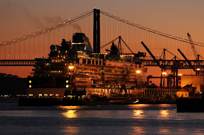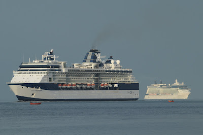 The SOLSTICE did her inaugural call in Lisbon. Photos show the arrival of the ships early in the morning after a voyage in tandem from Ponta Delgada, Azores. More SOLSTICE images in the LISBON CRUISE SHIPS blog.