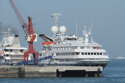 The Greek owned cruise ship CLELIA II called in Lisbon, on 1 to 3 June 2009 and berthed at the Alcântara passenger ship terminal, with departure at 7PM. CLELIA II is cruising under charter to Travel Dynamics and her former Bahamas registry was transferred to Malta in 2008. She was built in 1990 at La Spezia, Italy, for Renaissance Cruises as RENAISSANCE FOUR a name she old on until sold in 1996 to the Helios Group. CLELIA II is operated by Lindos Maritime, Pireus, and is owned by Goodwin Sands Marine, Ltd., Liberia. Photo taken on 3 June 2009 in the river Tagus, Lisbon.
