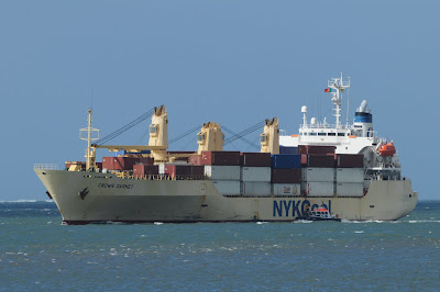 Built in 1996, the CROWN GARNET (IMO 9128049, 10-519 GT) is owned by the NYK shipping Group of Japan (NYK Reefers, London, UK), operated by NYKCOOL AB, of Stockholm, Sweden, with technical management provided by Wallem Shipmanagement Ltd., Hong Kong, showing the worldwide scope of today's shipping.