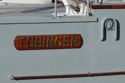 Com 433 toneladas de arqueação bruta (GR) e 44,2 m de comprimento fora-a-fora, o TÜBINGEN está registado em Gibraltar e não apresenta grandes diferenças exteriores, para além da remoção do armamento. Continua pintado de cinzento e à primeira vista parece ser uma unidade naval. Uma forma excelente de preservar um antigo navio e provavelmente uma maneira de ter um iate original e mais barato. Nada de que não me tenha lembrado já, quando observo os nossos últimos CACINEs com as suas linhas elegantes, mesmo a pedir serem transformados em iates de recreio...