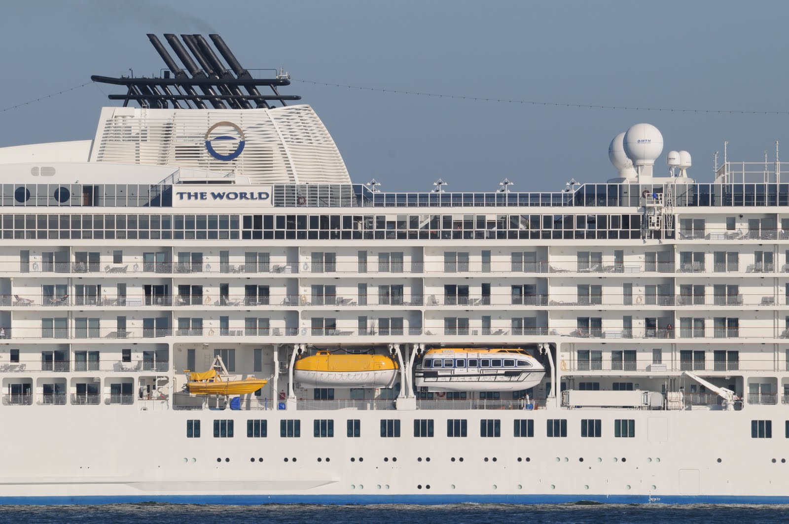 Luxury in Rio de Janeiro with the cruise ships THE WORLD and EUROPA alongside the cruise terminal in December 2003.
